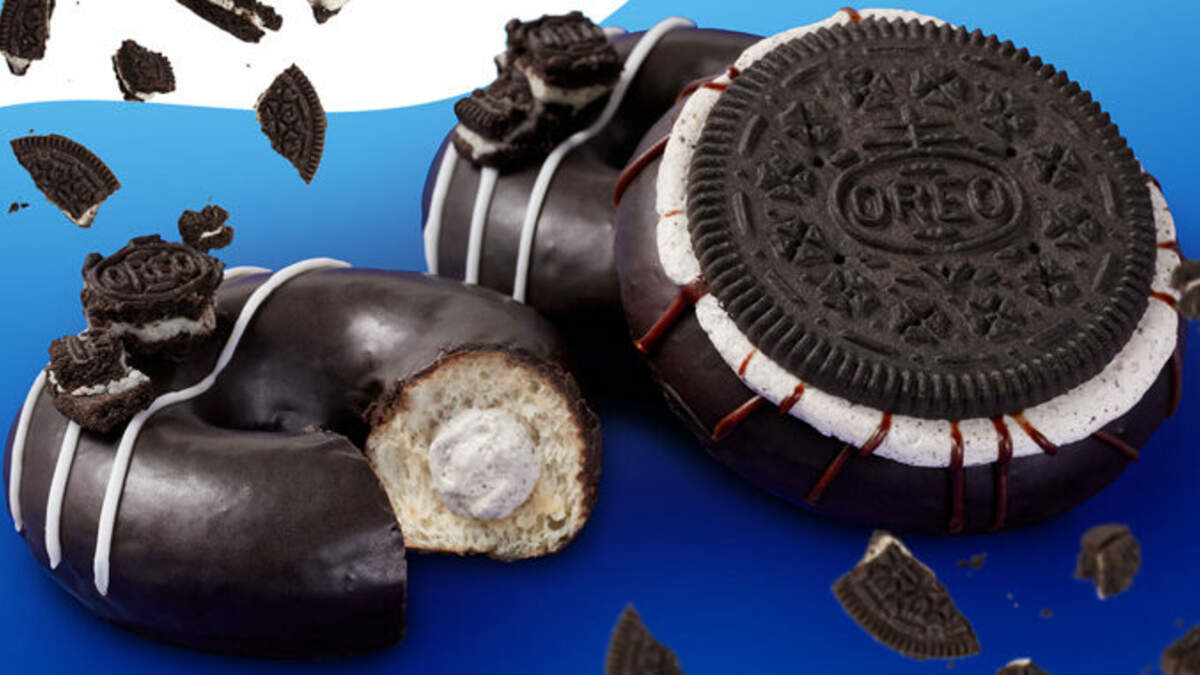 Starting this week, Krispy Kreme locations will be offering two new Oreo-themed donuts. There's the Oreo Cookie Glazed Donut: An original glazed donut covered in rich Oreo Cookie Glaze, filled with Cookies and Kreme, and finished with an icing drizzle and Oreo cookie pieces. Then there's the Oreo Cookie Over-The-Top Donut: An Oreo cookie glazed donut topped with cookies and kreme filling, drizzled with chocolate icing and finished with an Oreo cookie wafer.